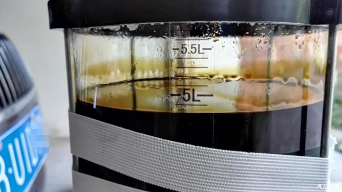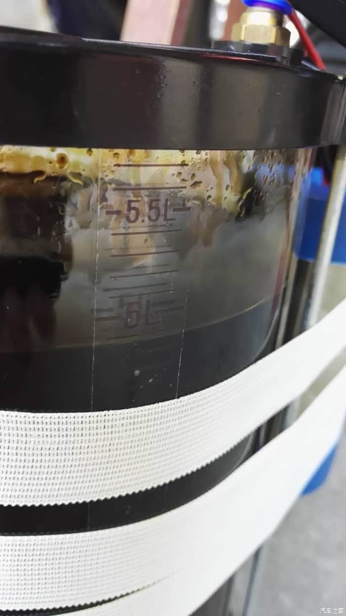 因为要先加入500ml的清洗剂,所以就必须先抽出500ml机油来,这样才不会损坏三元催化器。抽的时候很顺利,500ml半分钟的事情吧。
