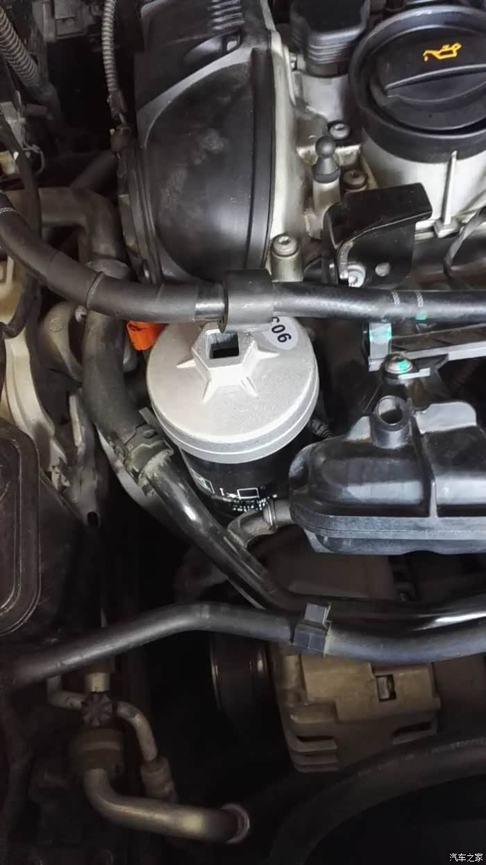 到这里呢,程序才走了一半,这个时候,需要用机油滤芯工具把原先的机油滤芯拆卸掉,车友看到上面的图片是不是觉得抽的差不都了,都快5升了,但凭直觉我觉得还有机油没有抽出来。等一会儿肯定要再吸一吸,反正机器是自己的,我想吸几次就吸几次,太傲骄了。。。