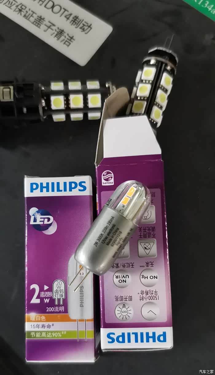 飞利浦的2w灯泡好像有极性,装好后驾驶位这边不亮,又拆了电瓶和大灯线卡,重新调了方向,再装回去就亮了,很亮