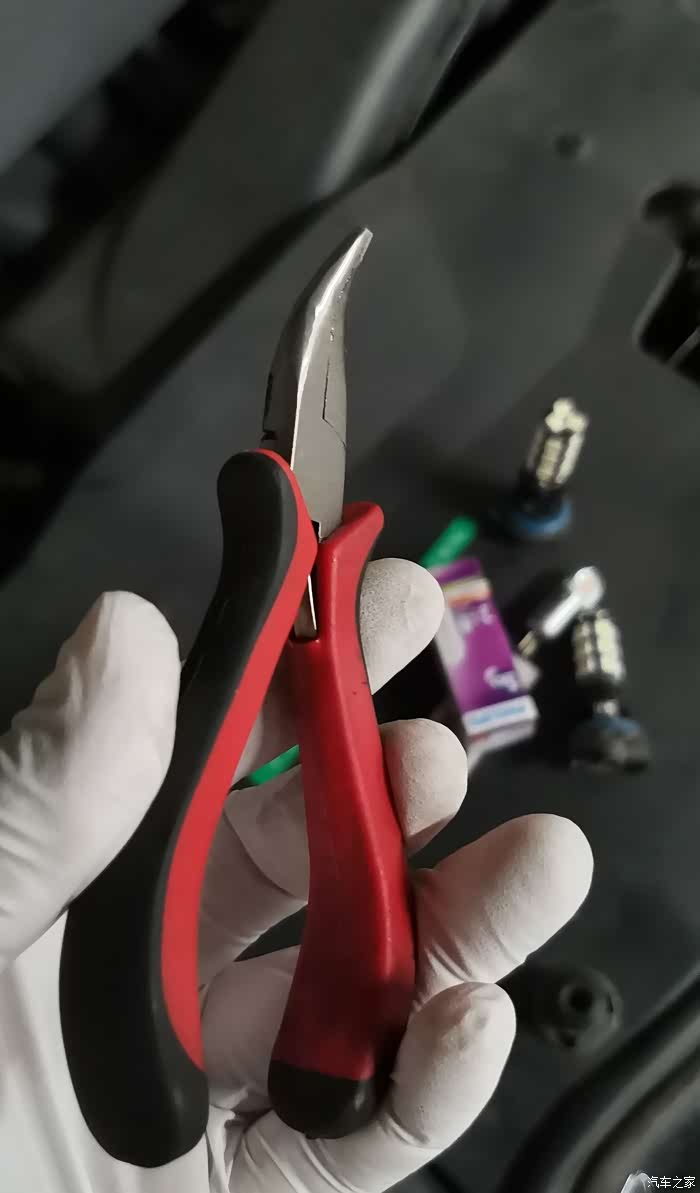 比普通尖嘴钳小多了,好像是做手工用的,这玩意拆日间行车灯座太容易了
