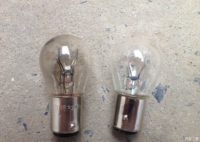 新旧灯泡,没有对比就没有伤害啊,怪不得不亮了,你看颜色都变成黑色的了