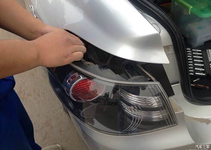 打开引擎盖开始更换示宽灯
