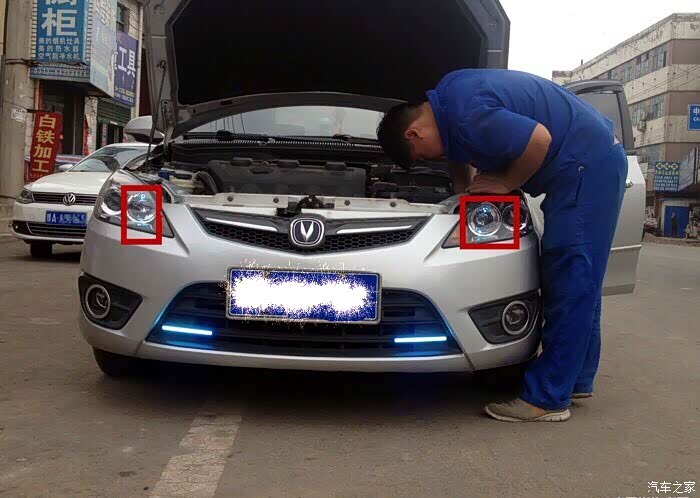 师傅开始动手打开示宽灯,也就是在大灯旁边的