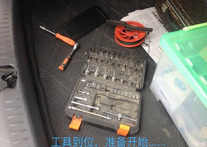 和师傅交流过后,其实很简单的,开始准备工具,打开后备箱