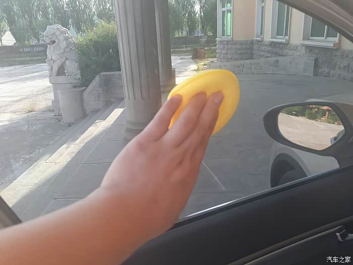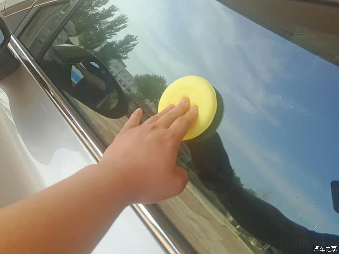 2、在保养前,必须先将车窗的玻璃清洗干净,然后将车蜡均匀的涂抹在车窗玻璃的里外两面,注意一点蜡不要打太多,薄薄一层就可以。