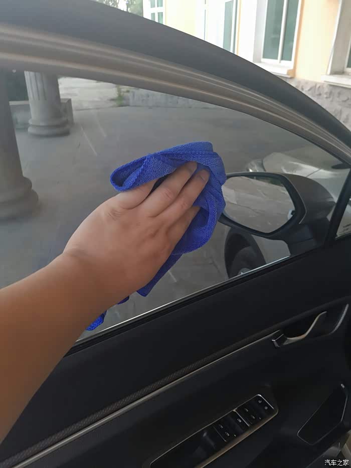 4、最后将4个玻璃都升起来,打开车门,把4个玻璃内外多余的车蜡擦拭干净。这时车窗玻璃上面就有一层薄薄的车蜡了,它的作用是起到润滑的,可以减少升降过程中的阻力,同时也降低玻璃升降器的工作负荷,提高了使用寿命。