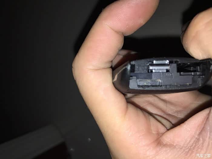 拔出机械钥匙,右边的是机械钥匙孔,左下有个槽,就是打开智能钥匙的地方,找个平口螺丝刀,一别就开了,千万不要别钥匙的侧面,虽然说能打开,但是伤外壳。
