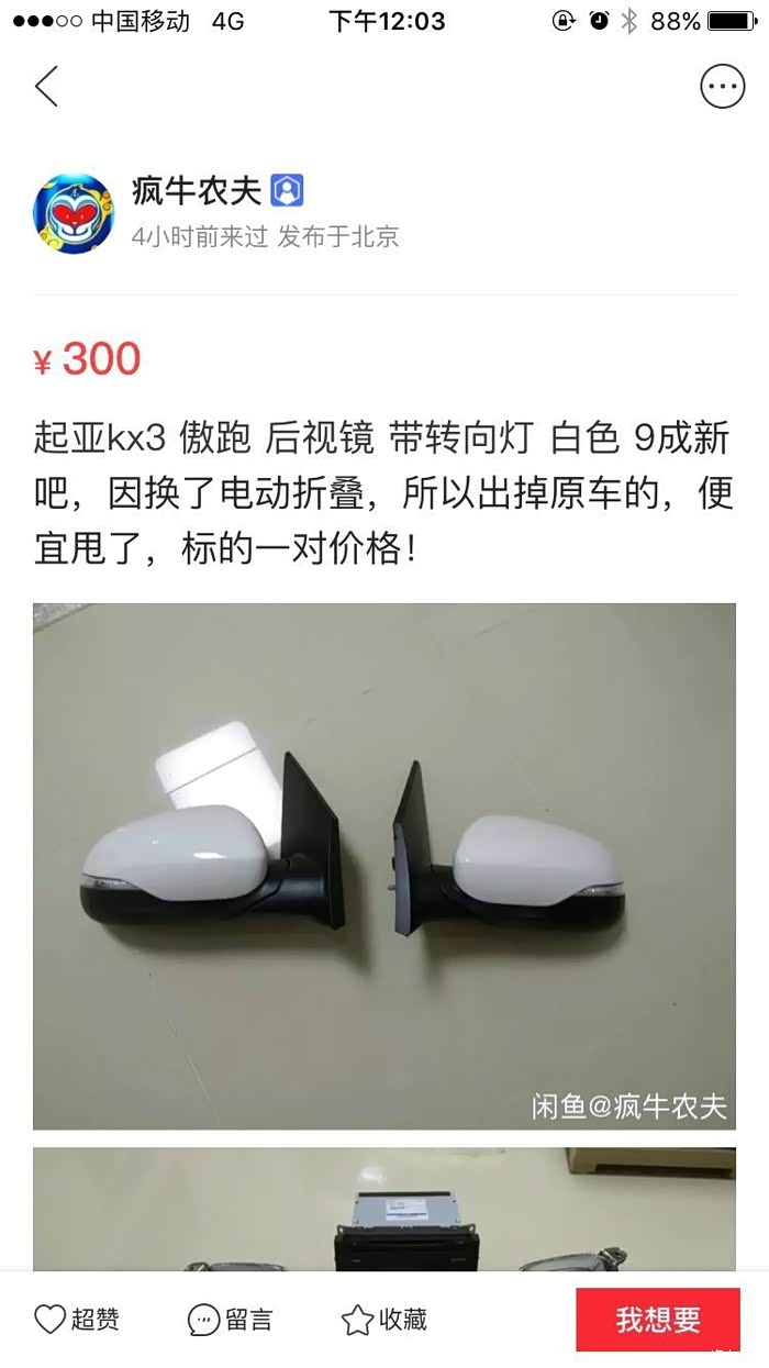 某鱼上的车友,改了顶配的电折叠耳朵,所以这个出售,真好被我看到了,价格便宜,算上运费320,今晚到货,果断安上。