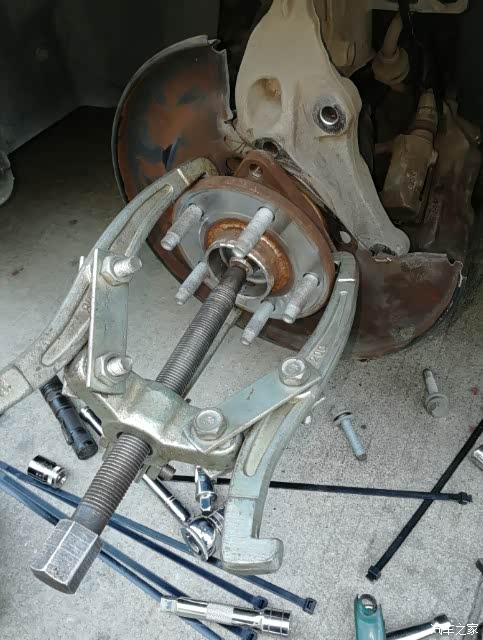 四、拆下固定轴承头的三个螺栓(18的套筒),用拉马取下轴承头图7,其实不用拉马应该也可以,有就拿出来用用,显得专业,哈哈哈哈哈