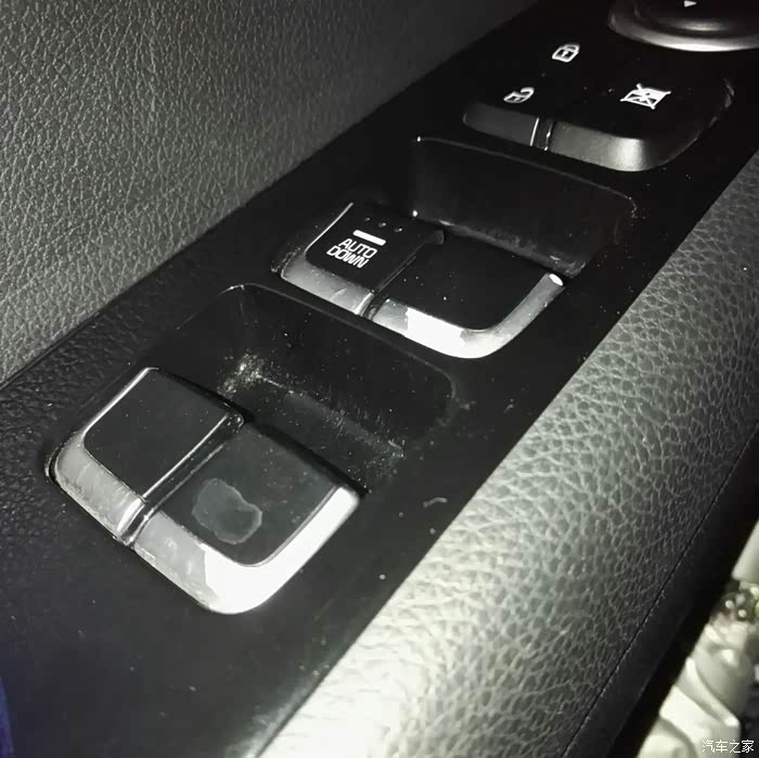 前段时间突然发现主驾车窗四个玻璃升降按键有两个起泡掉皮,其他两个上面有轻微褶皱,一碰也掉漆,刚开始以为是自己操作不当造成的,心里除了有点可惜,也还算淡定。