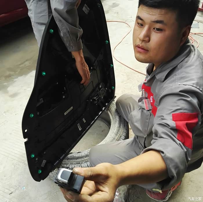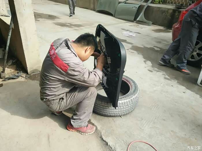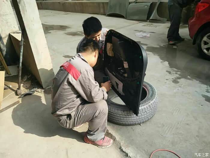 下午到店后,因为是9月29日,临近十一国庆,去4S店维修、保养的车特别多,终于等到我的车开进去了,在休息区等候。以为就换按键,应该很快的,谁知等半天还没有通知我,赶紧去找车最后在钣金喷漆处找到车子,维修师傅正在给其他车子钣金的钣金,喷漆的喷漆,没人管还在那里没人管,赶紧让师傅们先帮我换,赶时间啊。
