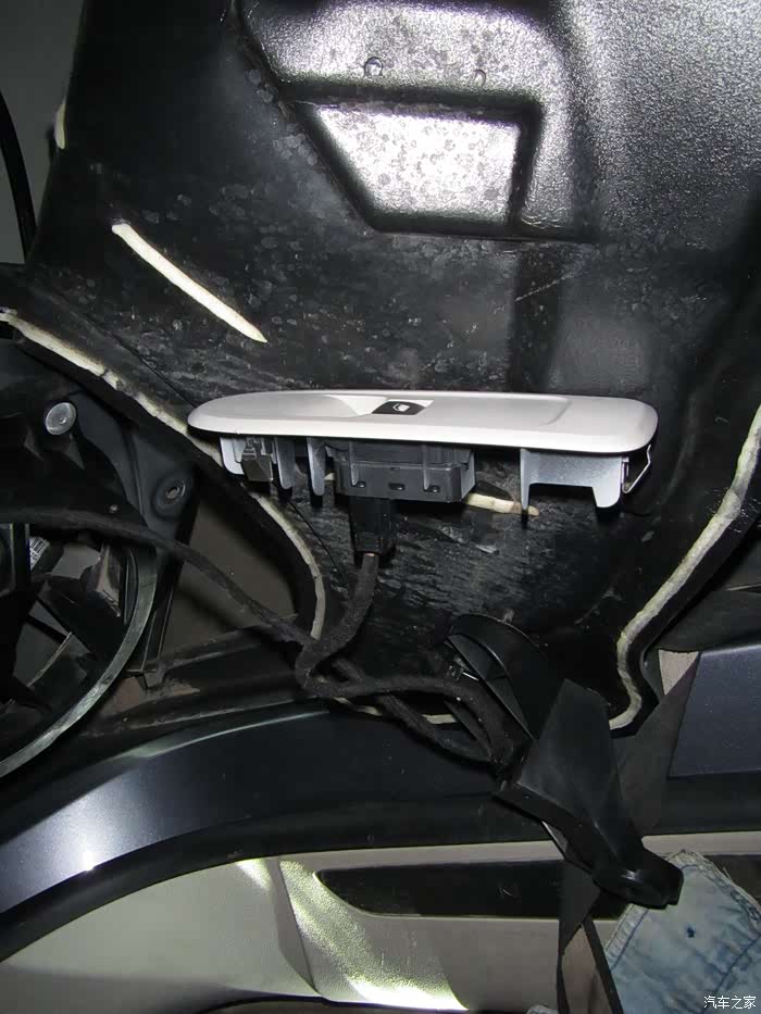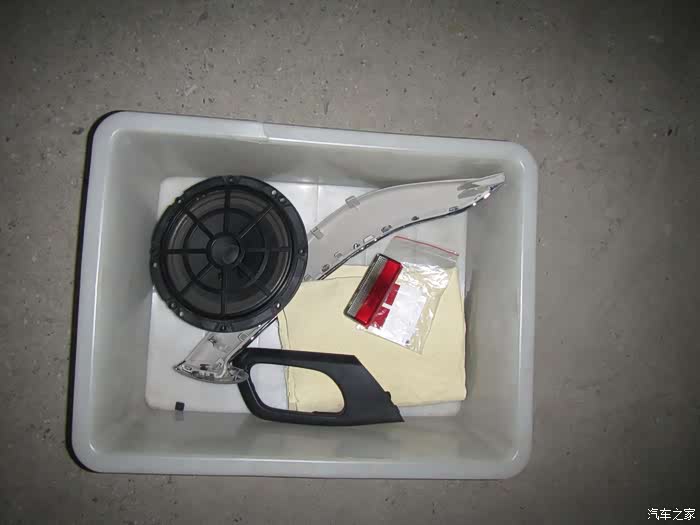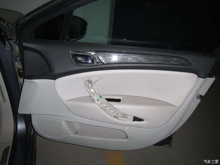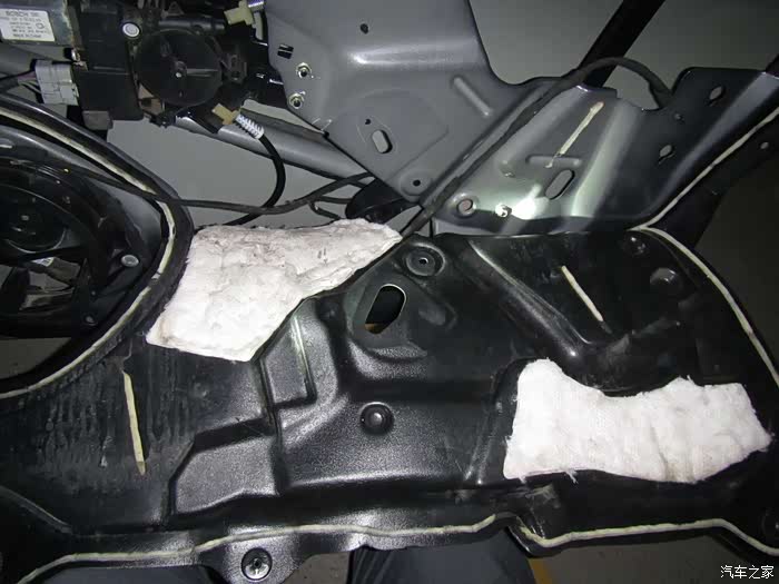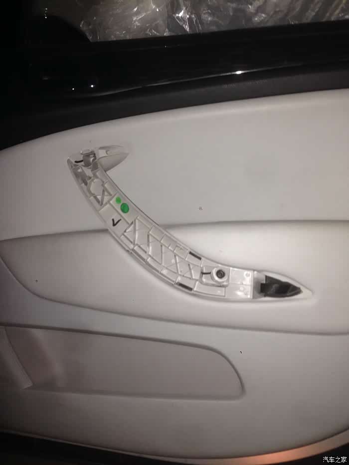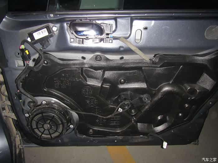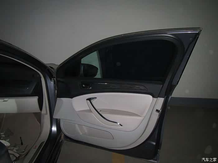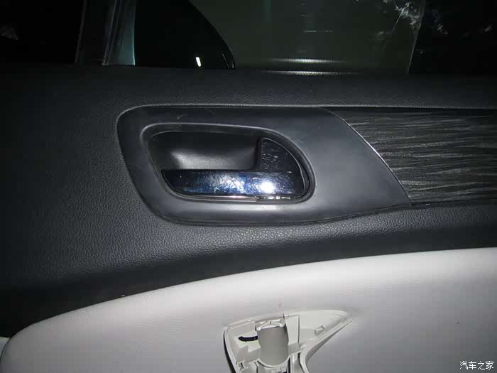 4、拉开门内饰板,从下部左下角下手,由于较劲,拉坏内饰板卡扣5个,更换新的。取下门灯。