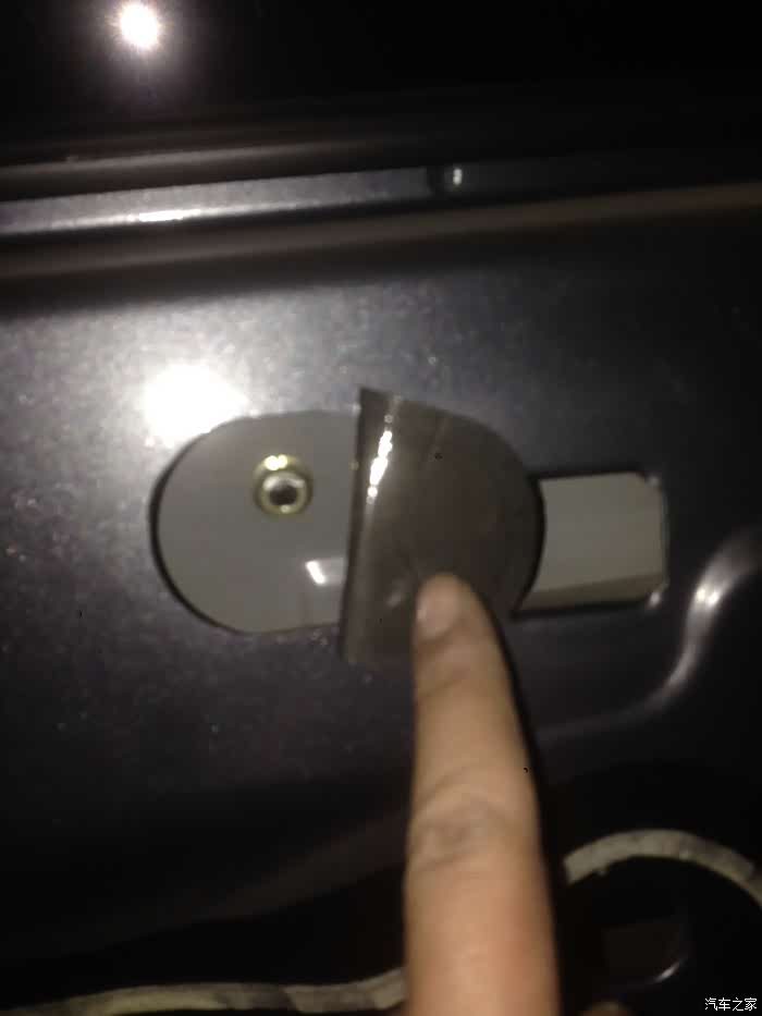 5、拆下拉手支架,撕开防雨护罩,用美工刀辅助,分开粘接胶。