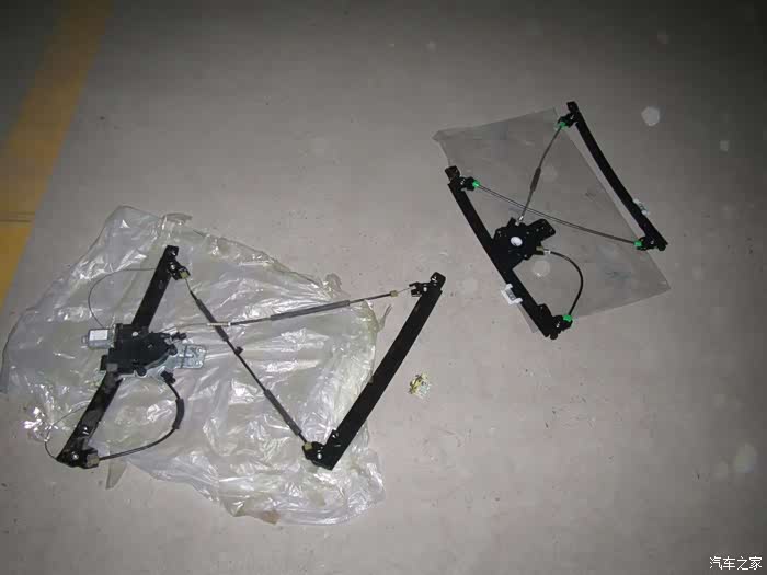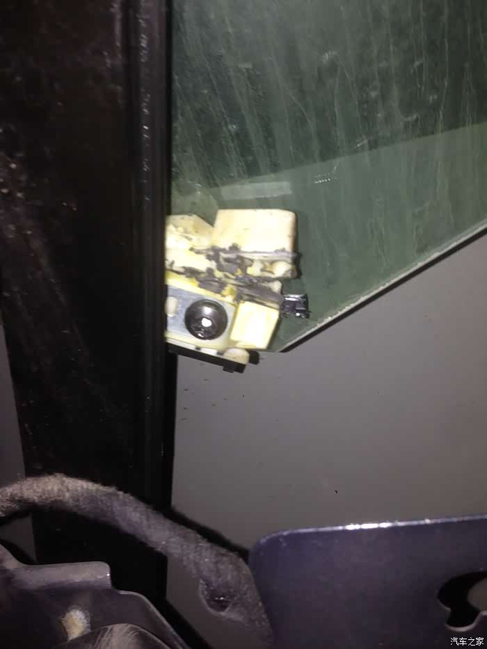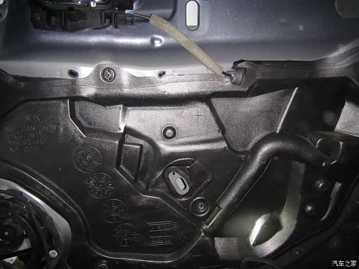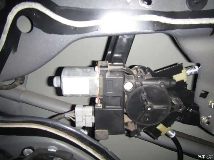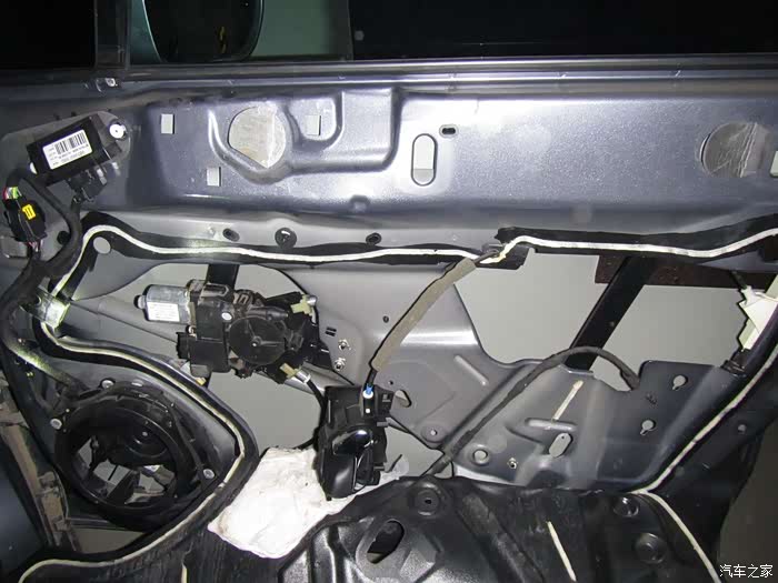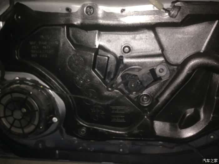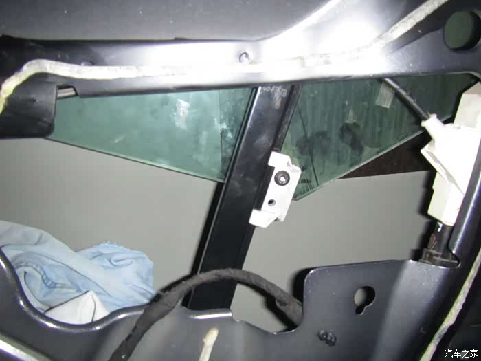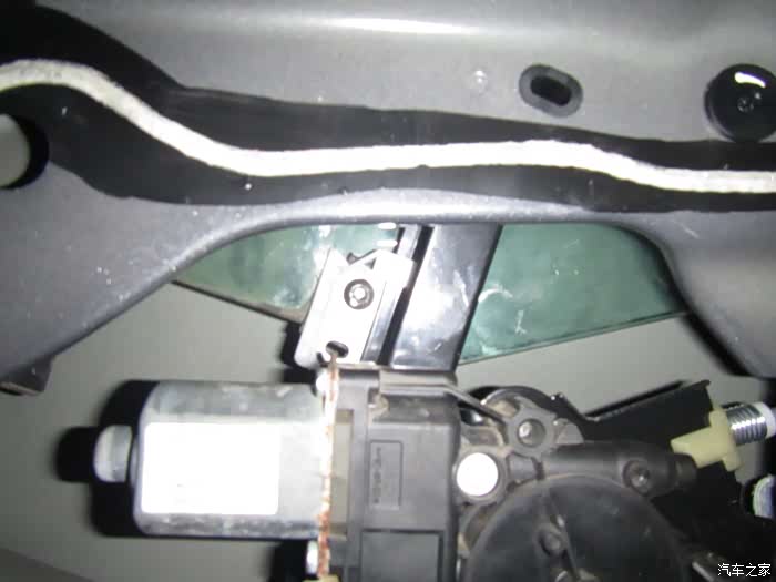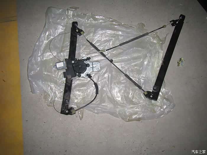 8、取出升降器支架,就是连接右侧玻璃的塑胶件碎了,钢丝绳乱了。