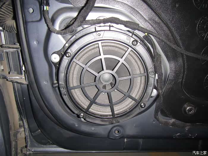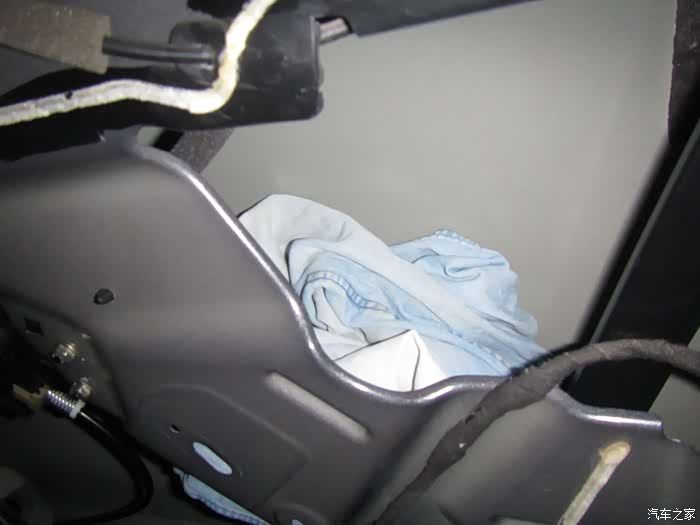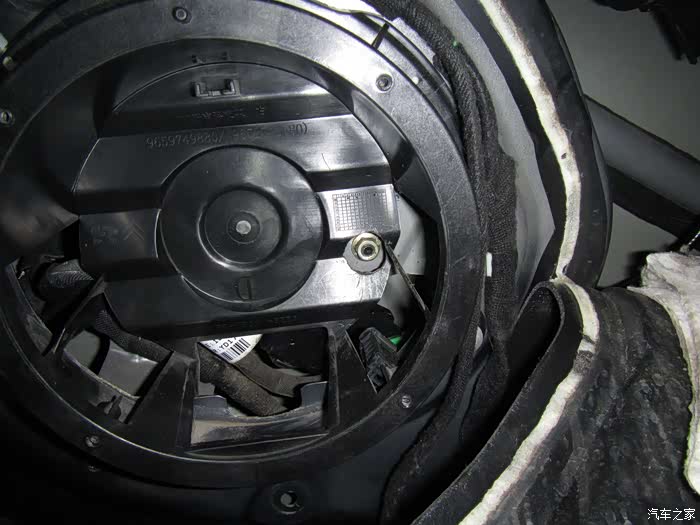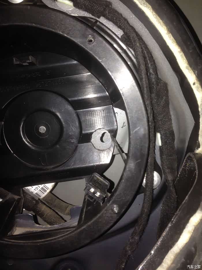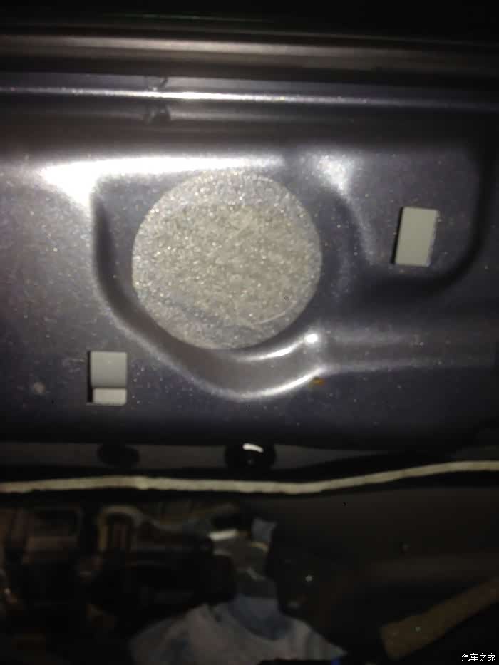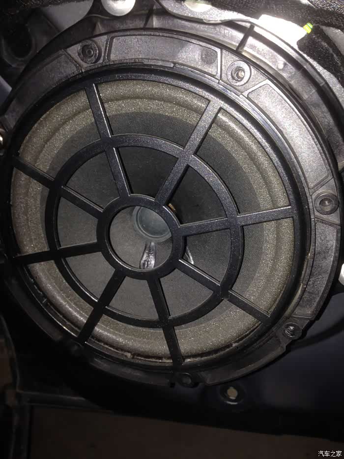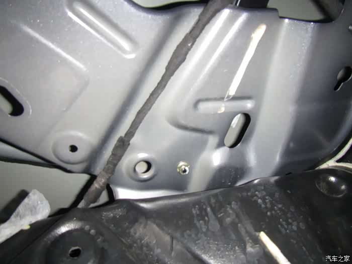 7、支架固定螺母共有4个,使用10MM套筒,其中一个在喇叭外壳下部。上次4S是拆的喇叭支架,用钻钻开铝铆钉,然后再铆上。