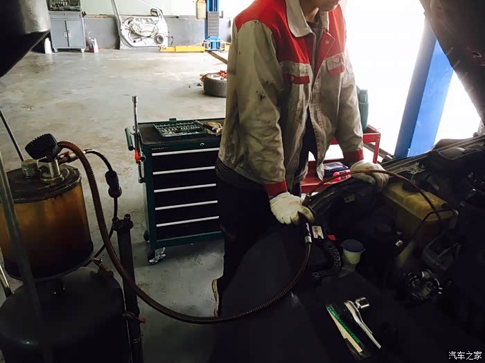 开始啦,模特0W40上车!开始抽掉旧机油!有个疑问是否抽的比重力彻底?
