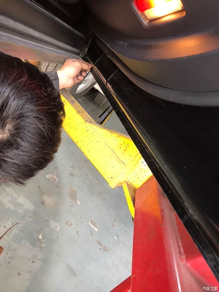 顺手让小师傅疏通了一下车门排水口,的确堵了。奇怪的是前门全堵,后门一点没事