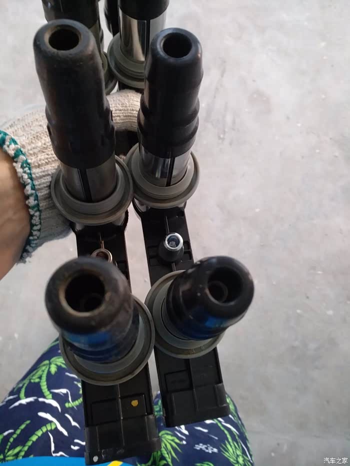 看点火线圈的插头处,有个白色的卡榫是往上的,正好卡住插座,所以拔插座的时候要在拔的同时,往上撬。