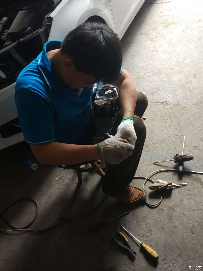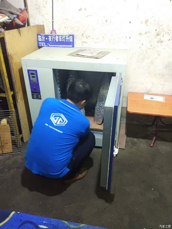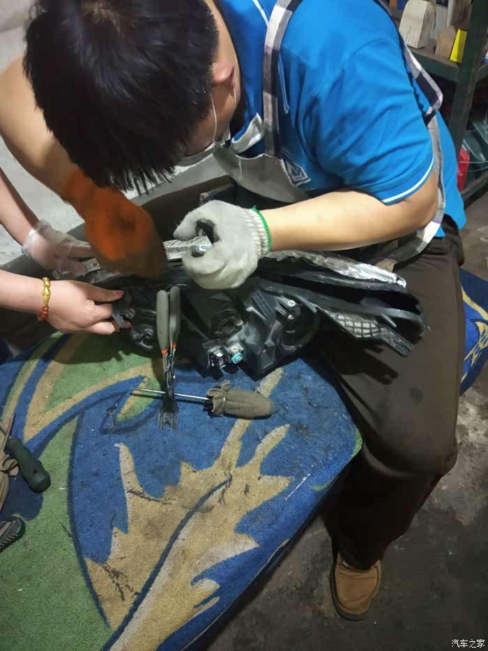 师傅在清胶,中途顶不住了,在车里眯了一会,出来灯都封好了,