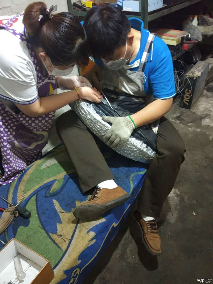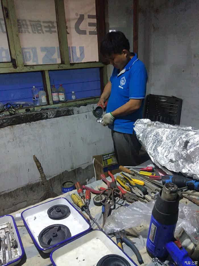 我没有用易改件,师傅打孔的时候我在边上抓灯着呢,所以就没有开孔的照片了,各位见谅,只有这个打磨灯罩的照片了,