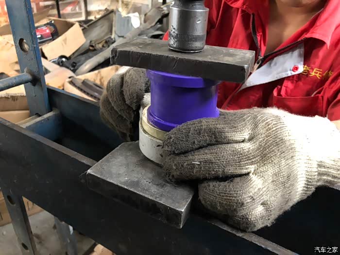 这个搞了半小时,不好压进去。这张图也可以看出重压之下,高分子衬套的弹性。