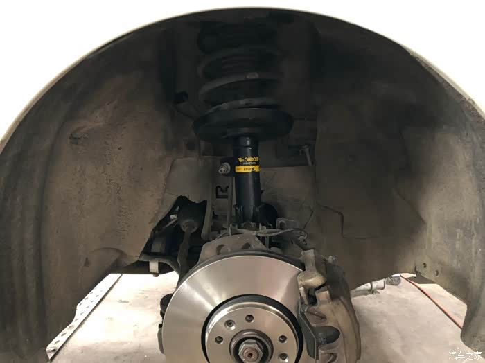 前减震安装完毕,刹车盘、车刹车片也换了布雷博的。