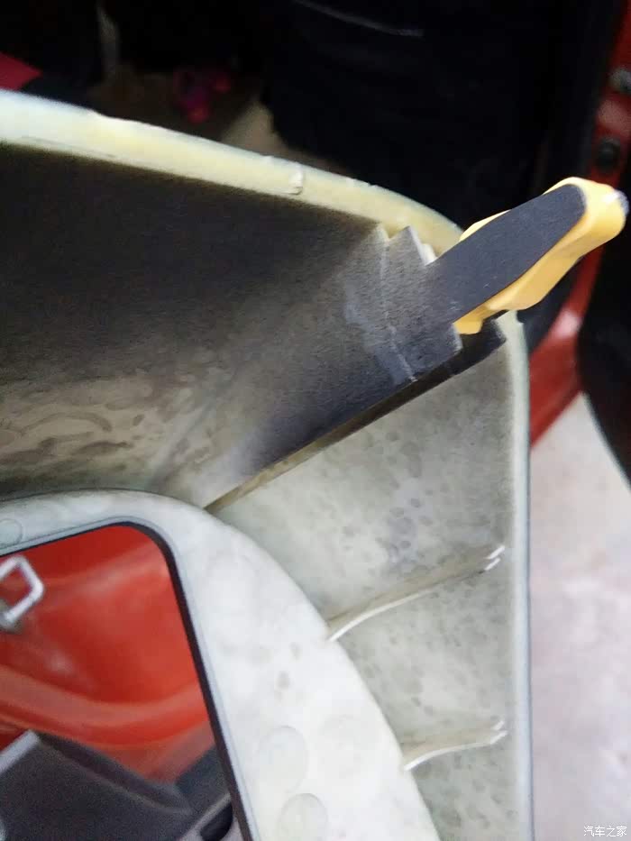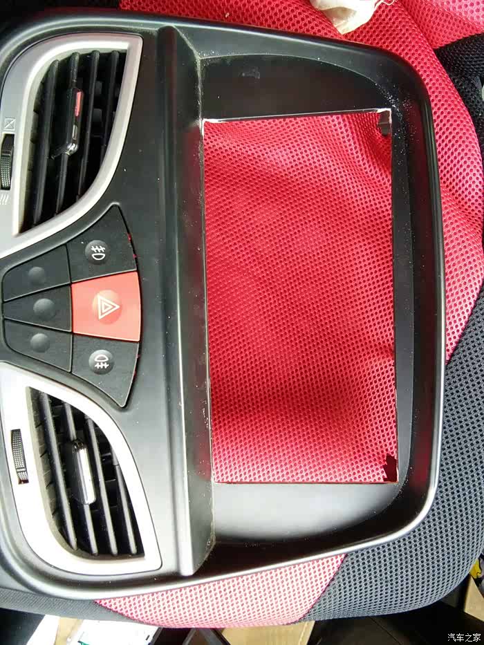 日产的收音机四个角是直角,而小迷的中控面板是带一点弧度的,需要对面板进一步处理:挖直角,另外把边框稍微修理修理,往外扩2到3毫米。
