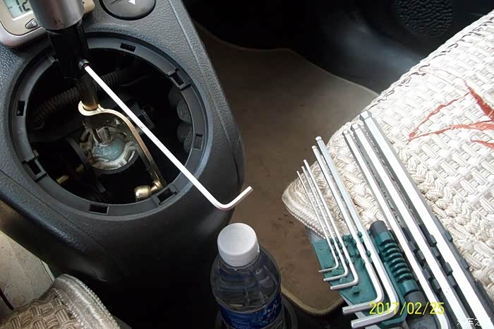 用小内六角工具拆卸下挡把头,将新套从上反套入挡杆,用扎带将小口扎紧,然后套上档杆,上紧固定锣丝即可。