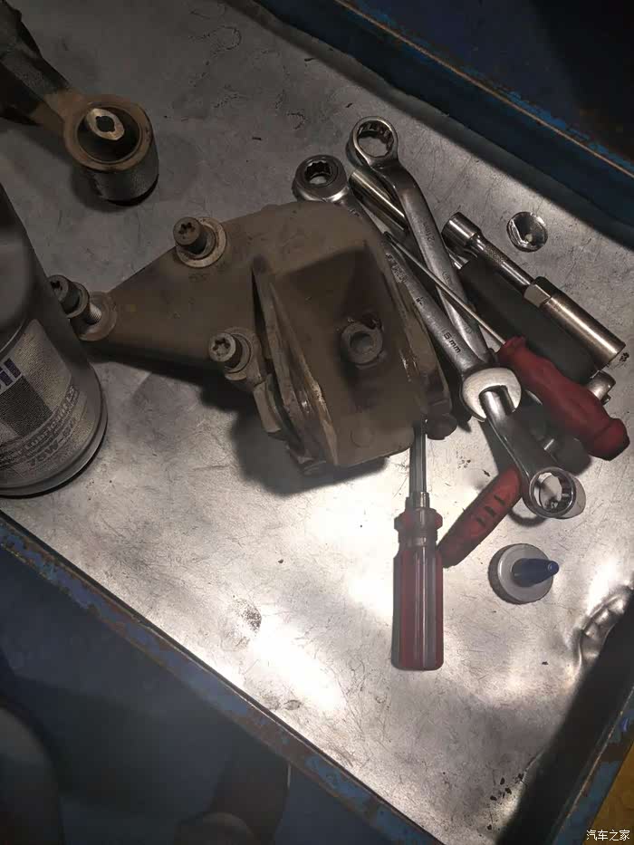 即专业又认真的师傅拆卸传说中的大螺丝,确实不好拧,还用了一点松动剂。
