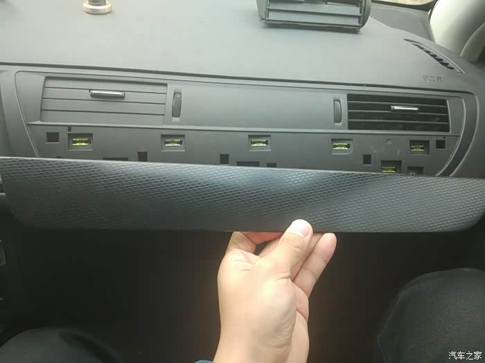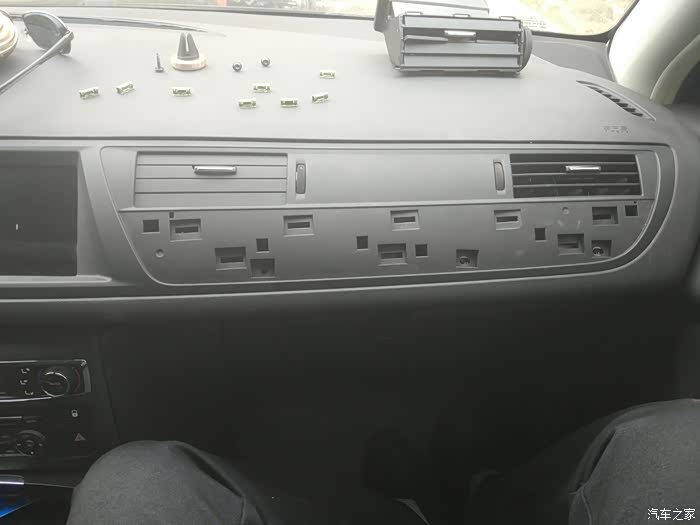 2代C5出了名的没储物盒。放个手机都费劲。没办法,只能求助于各种外挂。于是就在空调出风口上打主意。然而,来来回回的,终于把格栅给按断了一个。去店里要一百多,于是请教了一下店里的师傅,说撬开挡板,轻松拿下。又于是,我就自己干了!