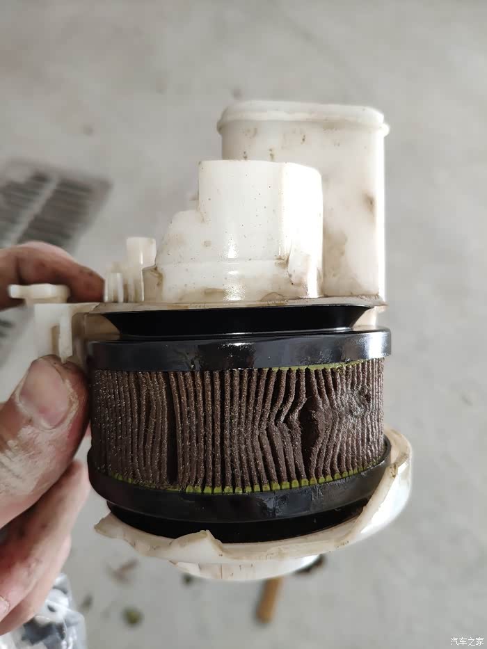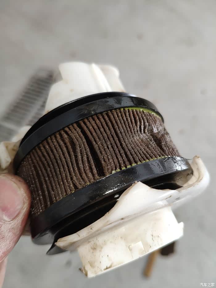 这个是外部滤袋,过滤大颗粒杂质的,6.8万公里已经很脏了!