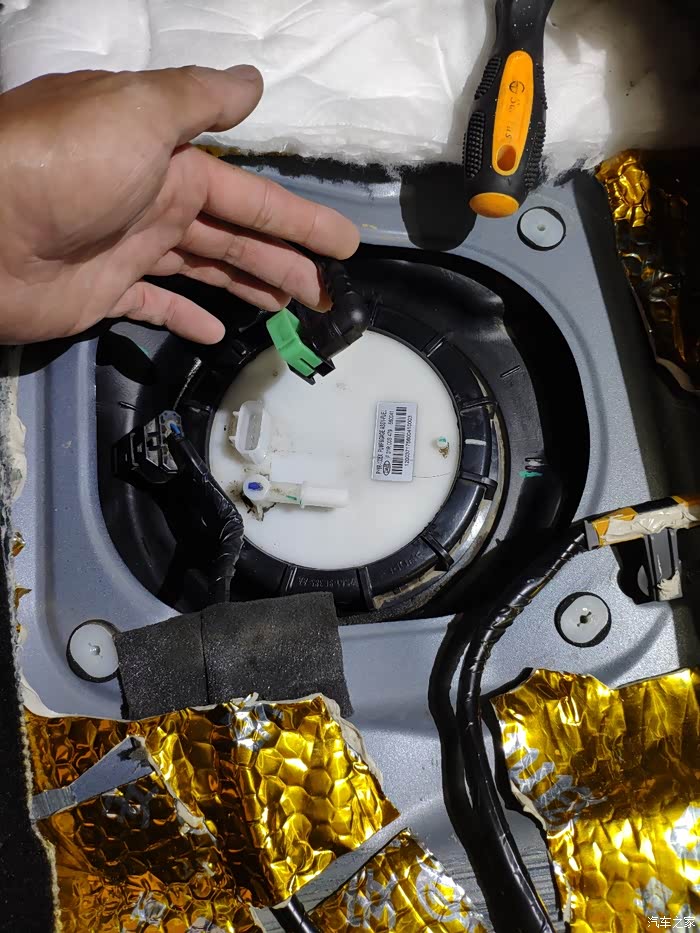 做全车隔音时,没有预留拆装汽油滤的考虑,所以直接被隔音材料全覆盖了,现在只能用壁纸刀划开了!