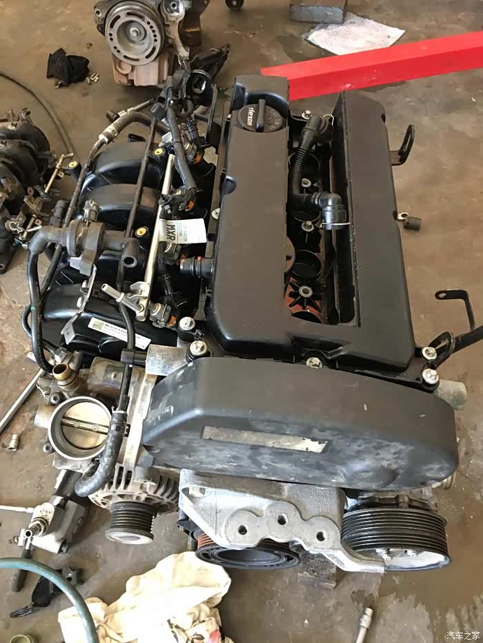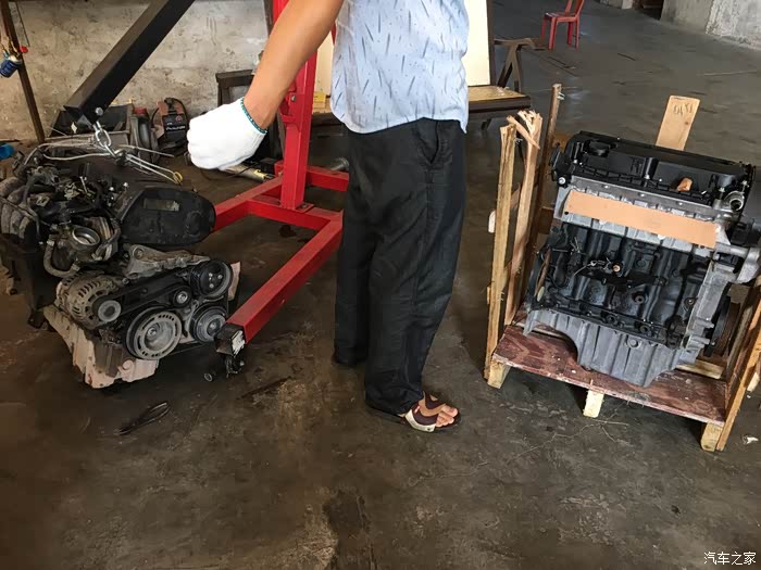 新机组装完成...基本上空调汞。水汞,节温器,底座,发电机,这些完好的配件还是用回原来的,因为这些是和1.6的一样的,1.8的