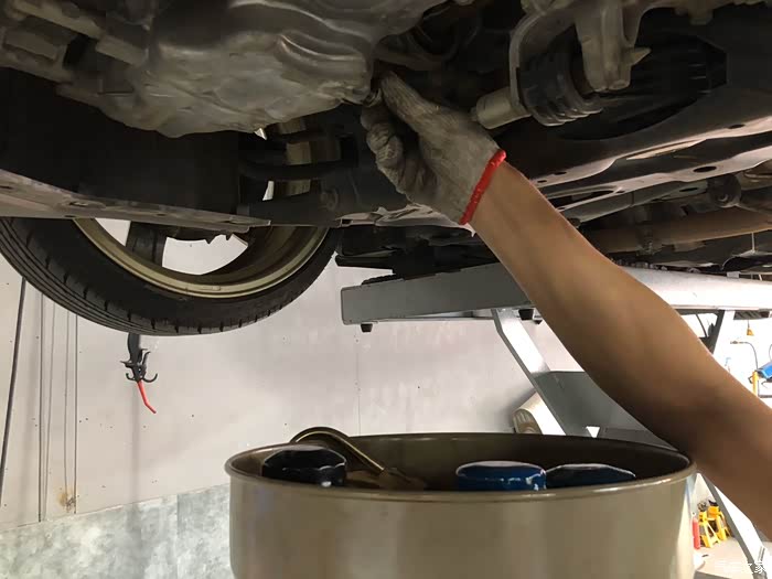 拆掉机油格,放出旧机油