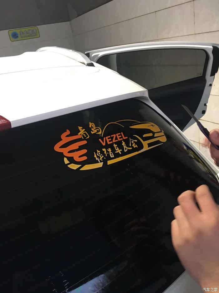 小白,大保健完后,小哥帮忙去掉车友会标志车贴