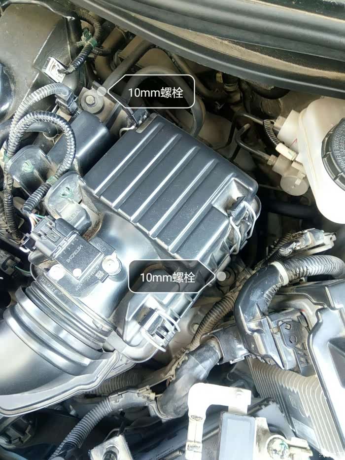 一、拆除空气滤清器:用10MM套筒拆除两颗固定螺栓