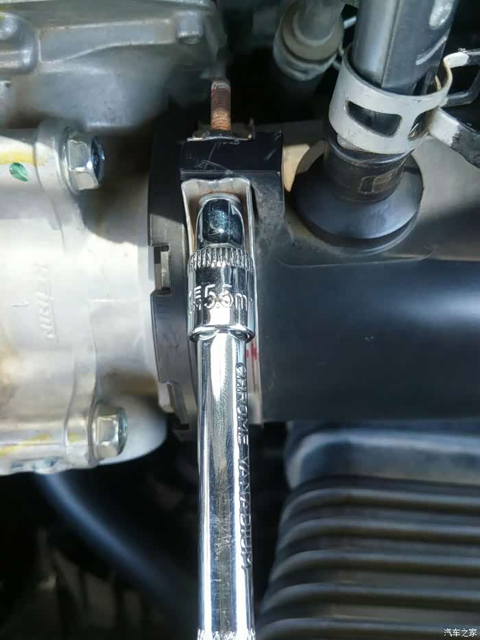 二、拆除节气门体上面的抱箍和真空连接管:抱箍上面的螺栓使用5.5MM套筒
