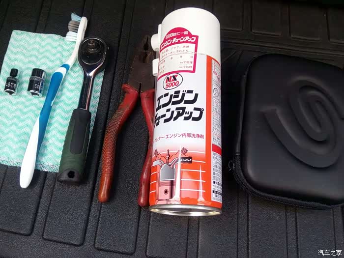 然后准备必需的工具:5.5MM套筒、10MM套筒、棘轮扳手、老虎钳、牙刷、抹布、大凤节气门NX5000清洗剂等