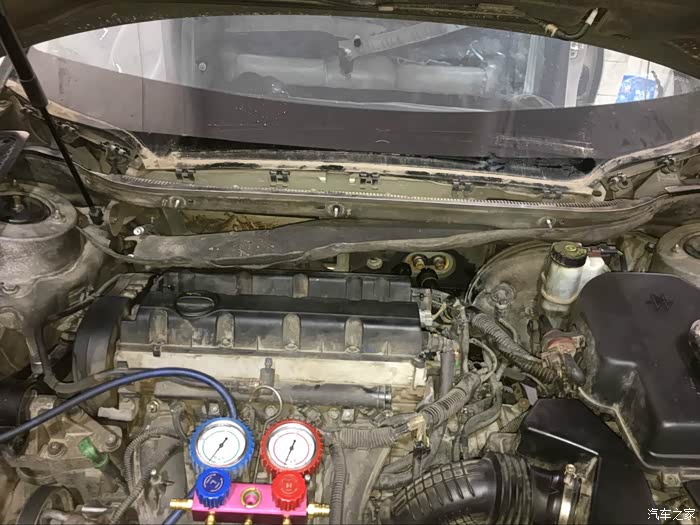 接上空调压力表,基本没雪种了