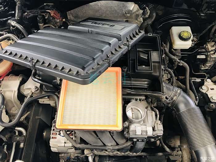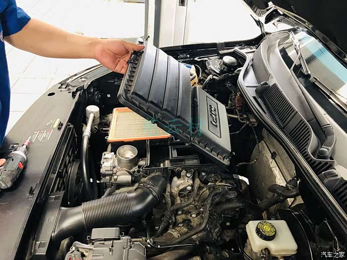 15-17款朗逸节气门位于空气滤芯壳体下方,需要先拆掉空气滤芯盖板的螺丝方可进行下一步的节气门检查工作