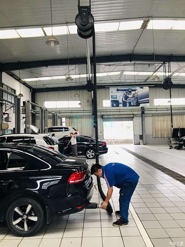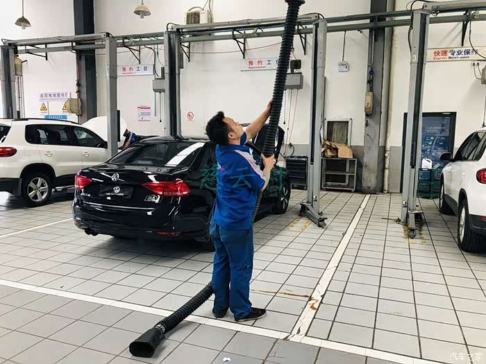 清洗的时间大约在20分钟左右,清洗完毕后,师傅正在收尾气净化管。 拔掉的时候的确能够感觉到排气管味道的确有些重
