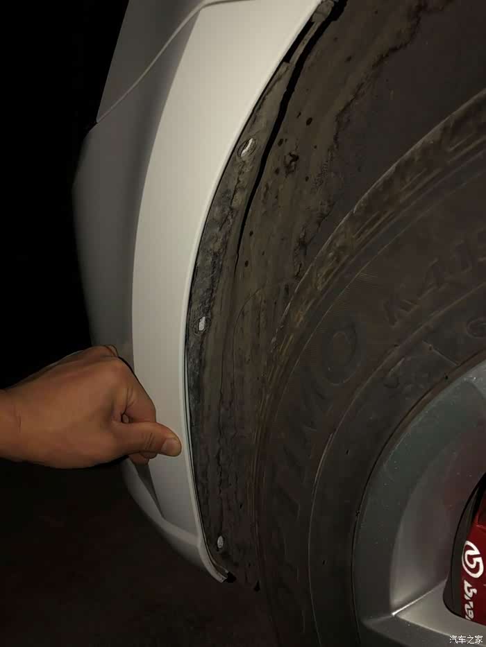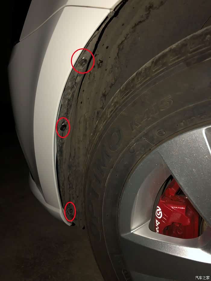 1、将方向往右打死之后,用米子扳手将挡泥板内衬和保险杠固定的三个螺丝拆掉,也可以拆下面两个,个人感觉拆两个空间有点小不好往里面伸手。