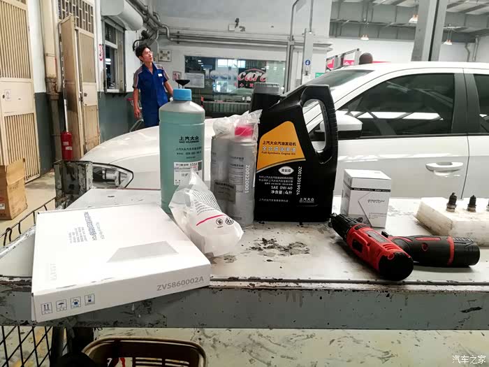 借着提升机工作的这段时间,服务顾问送来了这次保养的所有材料。令人惊喜的是其中多了一瓶原厂玻璃水,服务顾问介绍说是厂家为了推广手机预而搞活动赠送的,真是一个意外之喜啊!