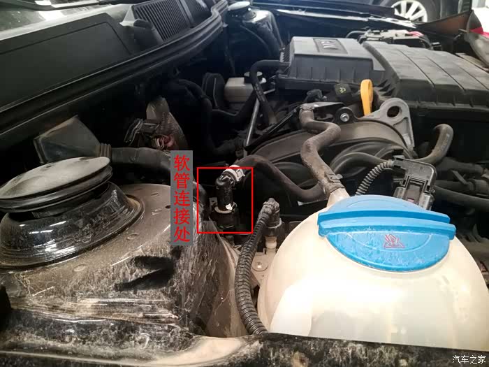 在发动机舱右前轮减震顶胶处有一根从发动机内延伸出来的软管通过接头与一根硬管连接,此处便是汽油通往发动机的必经之路也是另一个需要拔开的地方,将它拔开便可彻底切断汽油进入发动机的通道