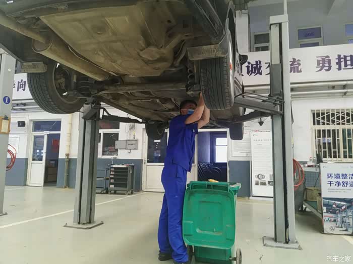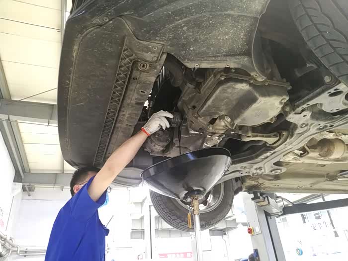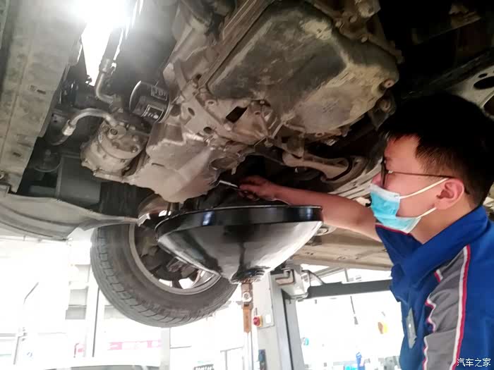 在我确定好保养材料数量齐全之后,师傅早已将发动机护板给拆卸了下来并开始了保养工作。