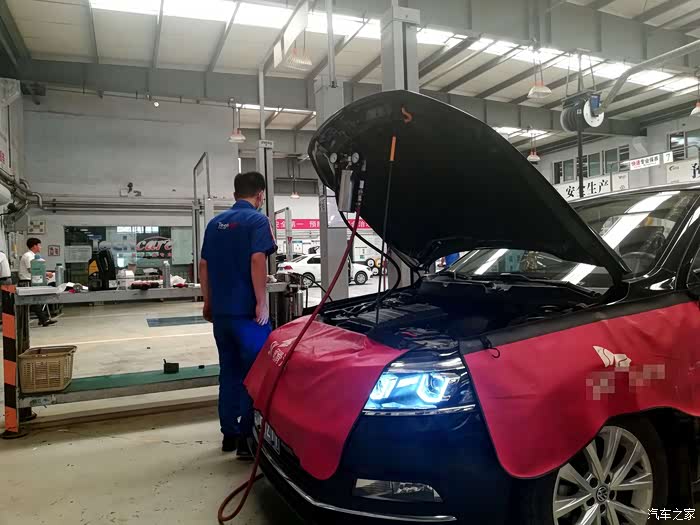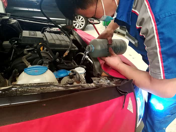 借着清洗喷油嘴的空闲时间,师傅帮忙进行了玻璃水的添加。