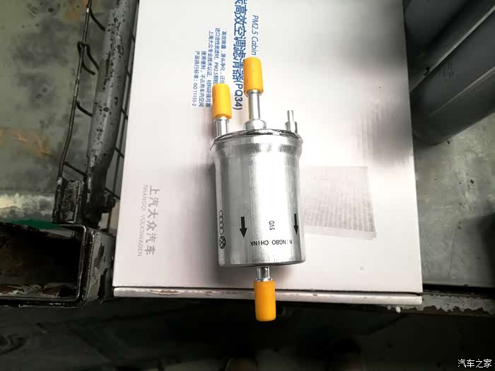 趁着机油排放的时间师傅对小狼的汽油滤芯进行了更换。汽油滤芯主要是用来过滤汽油中的杂质,避免杂质进入发动机气缸之内,保证流入燃油系统的汽油品质。本来不计划更换的但这次正好要做燃油系统清洁,索性连它也一起更换掉。