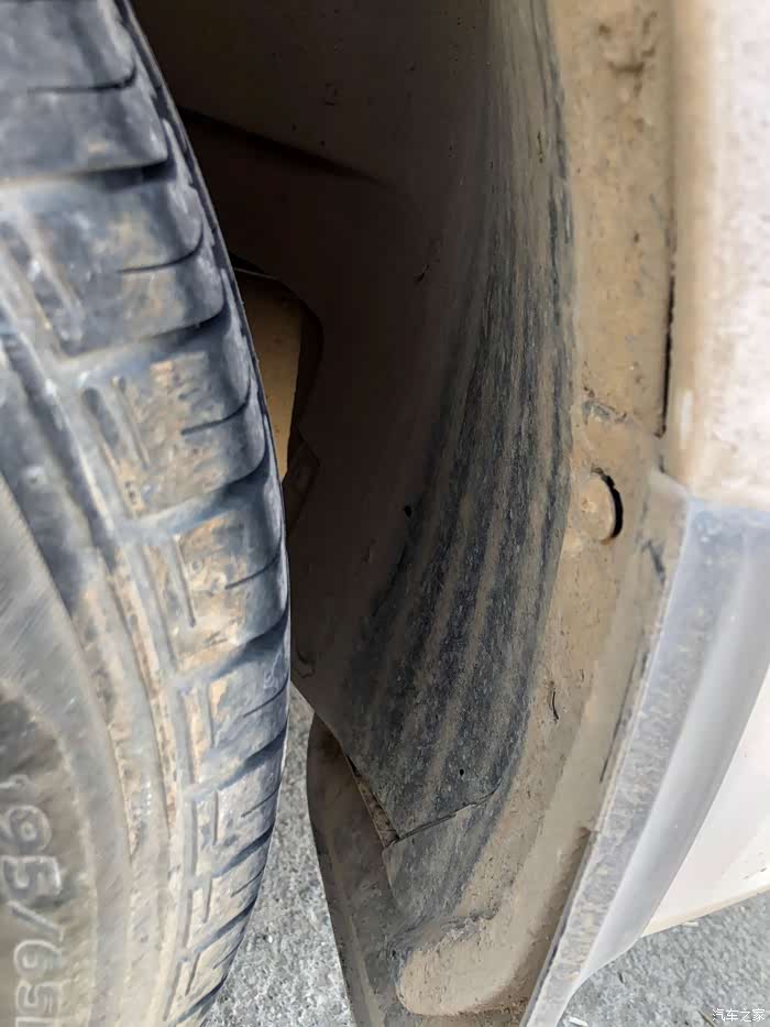 拆下来的旧挡泥板很脏,而且里面还有泥土。
