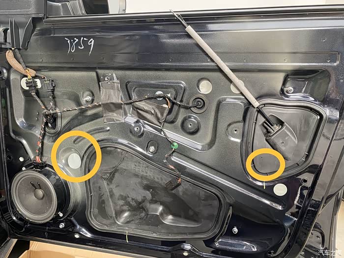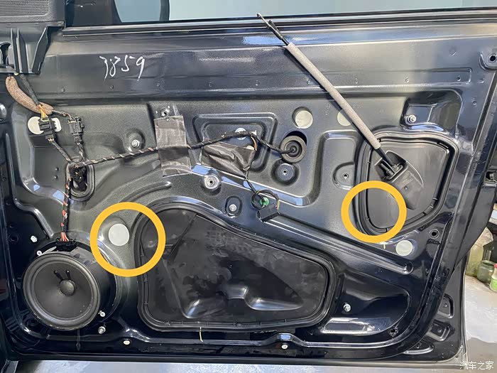 这样就可以拿下整个内饰板,发现新朗逸没有防水膜,用了软橡胶和圆贴密封