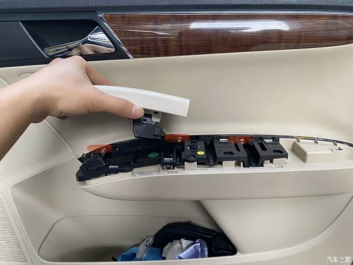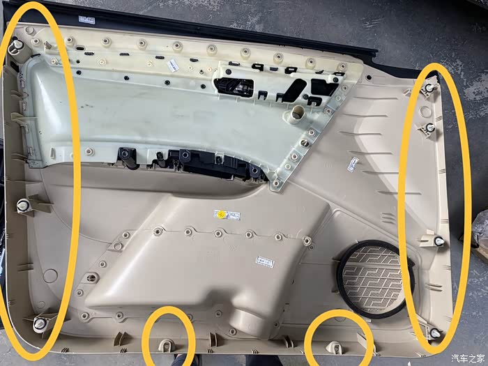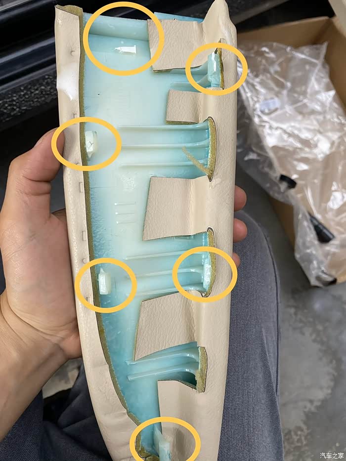 再拆真皮面板,有很多卡扣,要用力均匀,不然容易掰断卡扣